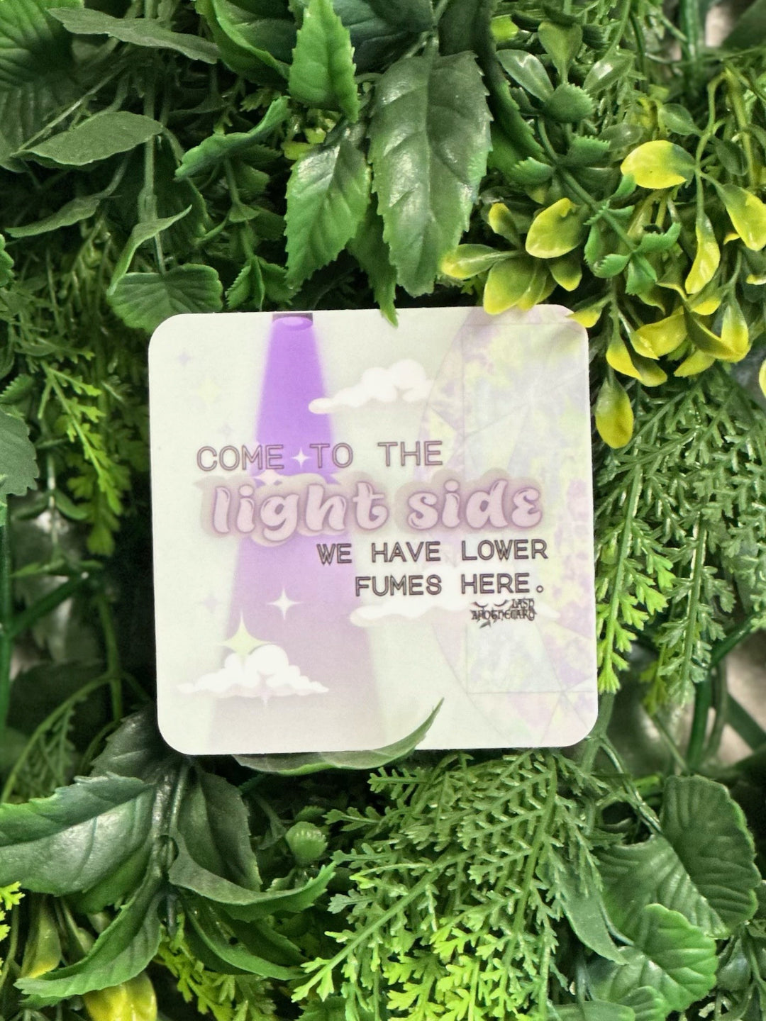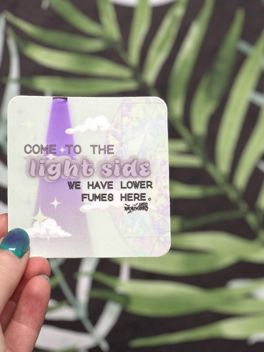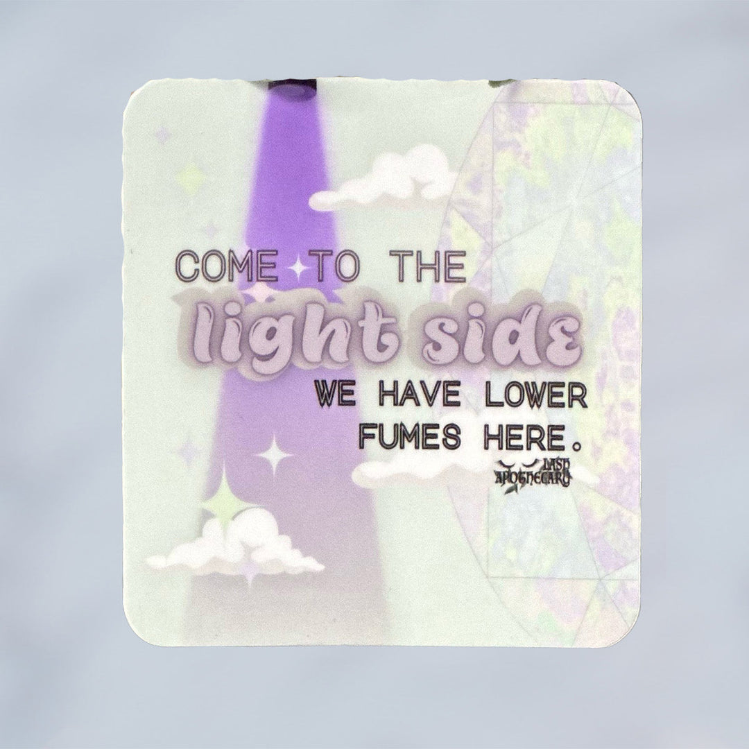 Únete al movimiento de curado con LED y preséntalo con esta divertida pegatina Light Side. Muestra tu apoyo al futuro brillante de la tecnología LED y adopta el eslogan divertido "ven al lado de la luz". Adopta un enfoque divertido y peculiar para expresar tu amor por todo lo relacionado con los LED. ¡No hay necesidad de tomarte demasiado en serio!