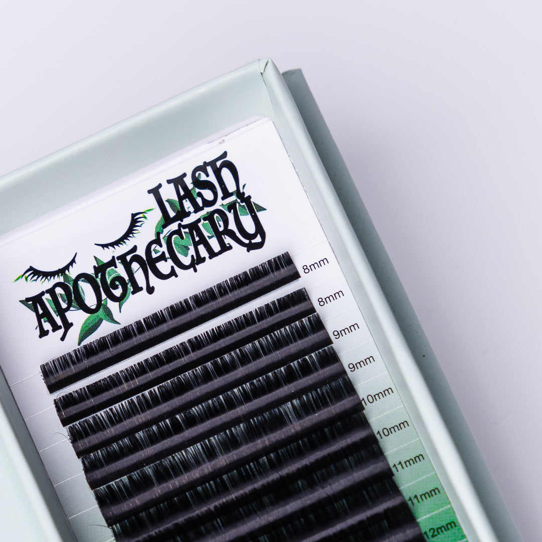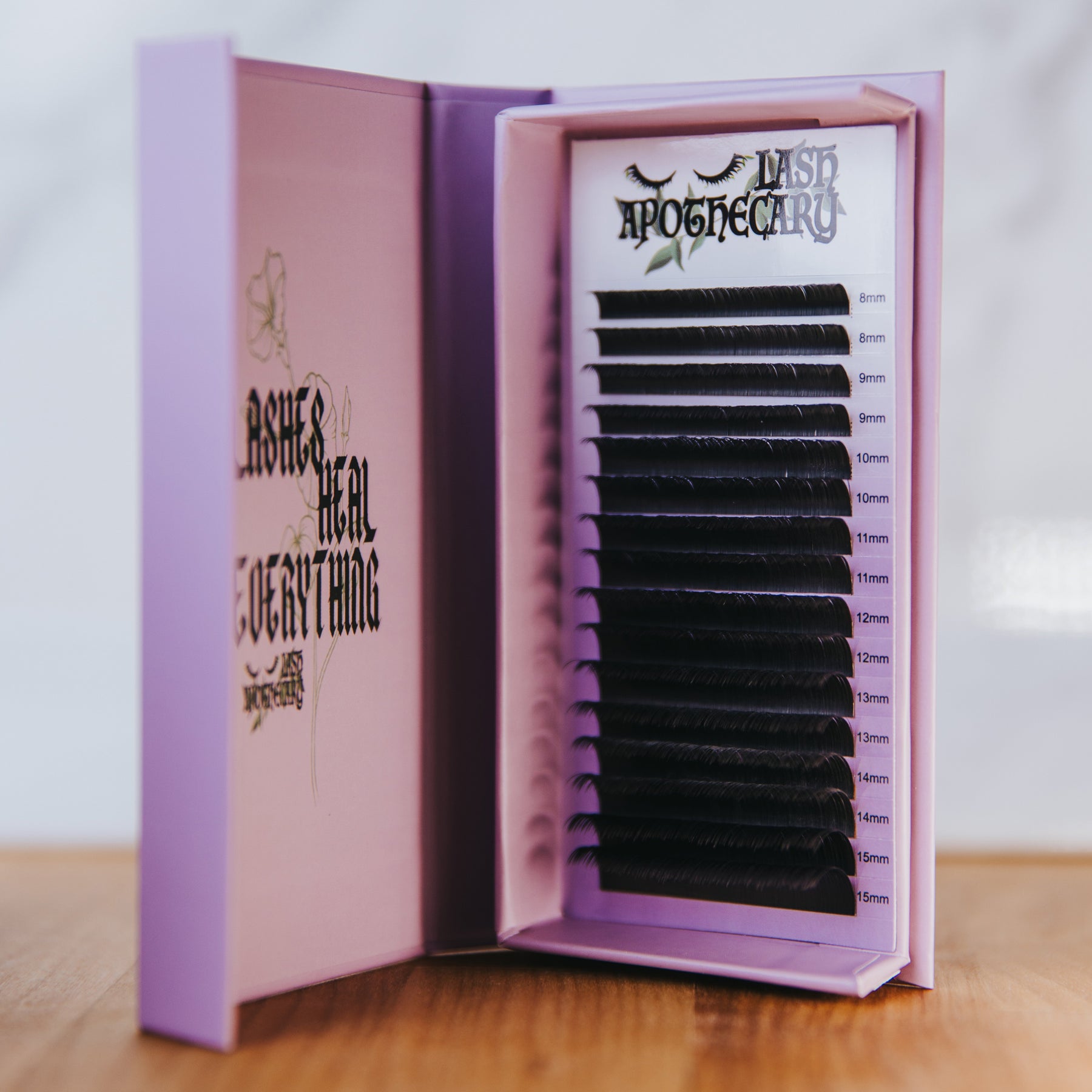 ¿Buscas un juego de extensiones de pestañas de alta calidad? Ya sea que busques un look sutil o un mega juego de pestañas esponjosas, estas pestañas de visón sintético pueden ayudarte a lograr el volumen perfecto para un resultado hermoso y de aspecto natural. Ligeras y oscuras, estas pestañas son ideales para abanicos claros o mega. Dale a tus clientes el look que anhelan con las pestañas Mega Volume de Lash Apothecary. Desde abanicos pequeños hasta grandes, tenemos todas las longitudes, diámetros y rizos que necesitas para personalizar un look para cada cliente.